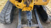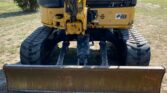 The enclosed cab provides comfort and protection for the operator, and auxiliary hydraulics allow use of a variety of attachments. Key features include a 68-inch backfill blade, a 4-foot stick, and a 17-inch TAG bucket with 4 teeth for efficient material handling.