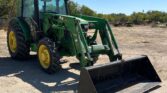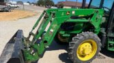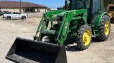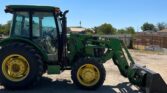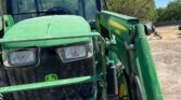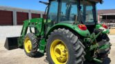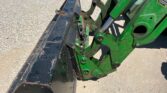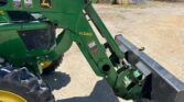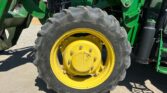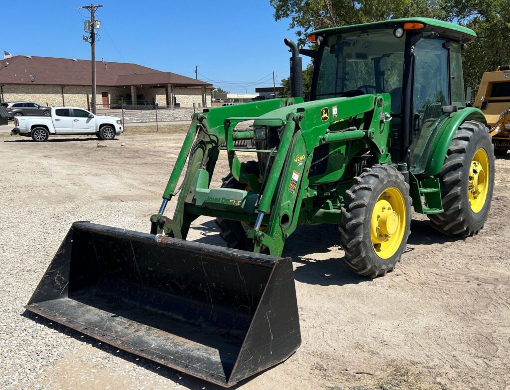 Equipped with a John Deere H240 loader controlled by a joystick, the 5075E offers efficient material handling with its 84-inch-wide bucket. Riding on 9.5-24 front tires and 16.9-24 rear tires, with four wheel weights for added stability, this tractor provides strong traction and balanced performance.
