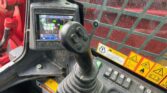 The hydrostatic transmission with two-speed travel ensures smooth, precise operation and optimal control in tight or uneven terrain. The enclosed cab, equipped with air conditioning and heat, offers comfort for the operator, while hand-controlled bucket operation and the Electronic Monitoring System panel enhance usability and efficiency.