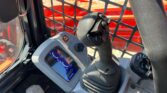The hydrostatic transmission with two-speed travel provides smooth, precise, and versatile maneuverability. The enclosed cab offers a comfortable operator environment with air conditioning and heating, while the hand-controlled bucket system enhances operational control.
